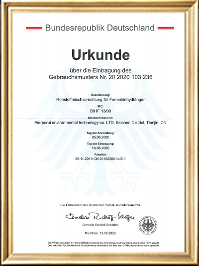 實(shí)用新型專利證書(shū)(一種甲醛清除劑的原料混合